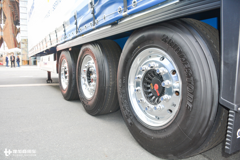 克劳耐有自己的挂车车轴品牌,不过也可以选装其他供应商。SAF(赛夫)是欧洲挂车里面最常见的车轴品牌,世界上最大的挂车零部件制造商,同样是一家德国企业。配套轮胎规格385/65R22.5,空气悬架和盘刹。