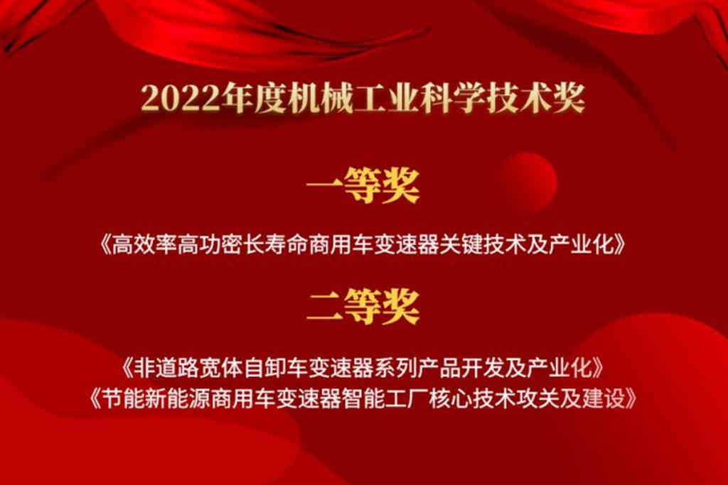 法士特集团参与项目《高效率高功密长寿命商用车变速器关键技术及产业化》荣获“一等奖”、《非道路宽体自卸车变速器系列产品开发及产业化》《节能新能源商用车变速器智能工厂核心技术攻关及建设》荣获“二等奖”。