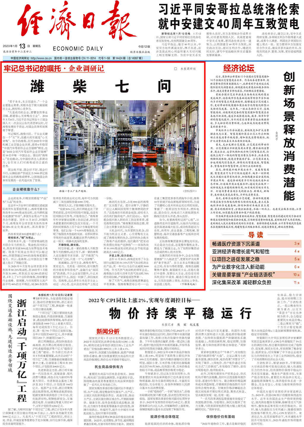 1月13日,经济日报头版头条发布了一篇名为《潍柴七问》的企业调研文章,在这篇文章里,经济日报以一问一答的形式,全面而系统的阐述了潍柴集团做大做强的关键所在,非常值得我们细细的去品味和阅读。