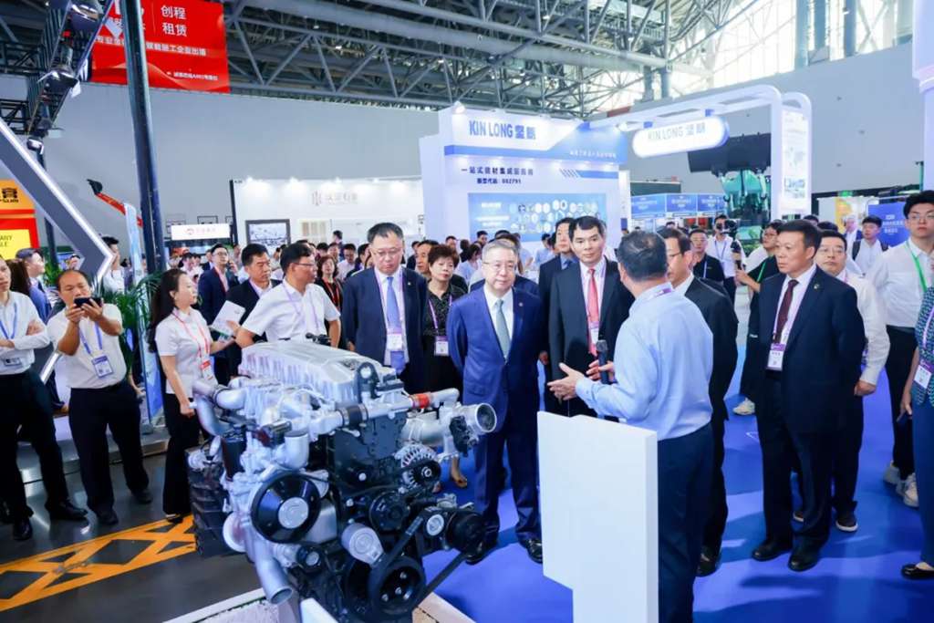 展会现场,厦门市委常委、副市长黄燕添,中国对外承包工程商会会长房秋晨参加“搭建对接新平台,开创合作新模式”主题论坛,并带领各央企负责人到玉柴展位参观。