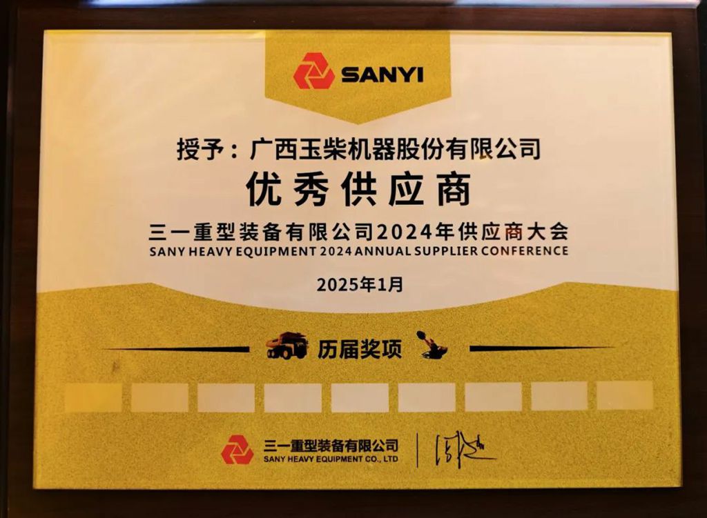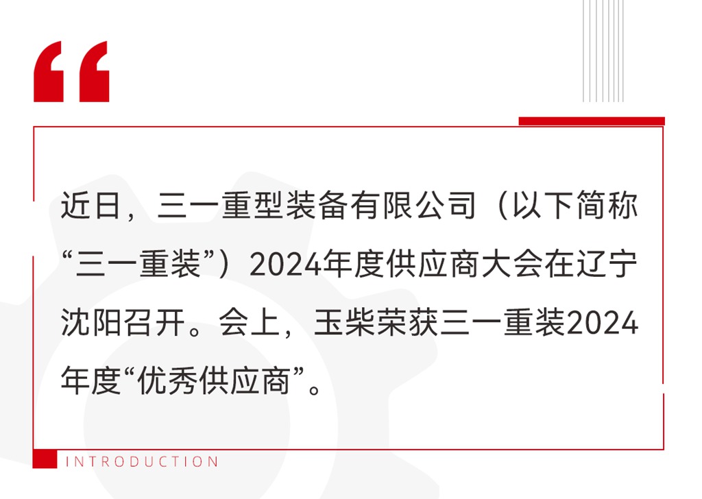 玉柴荣获三一重装2024年度“优秀供应商”