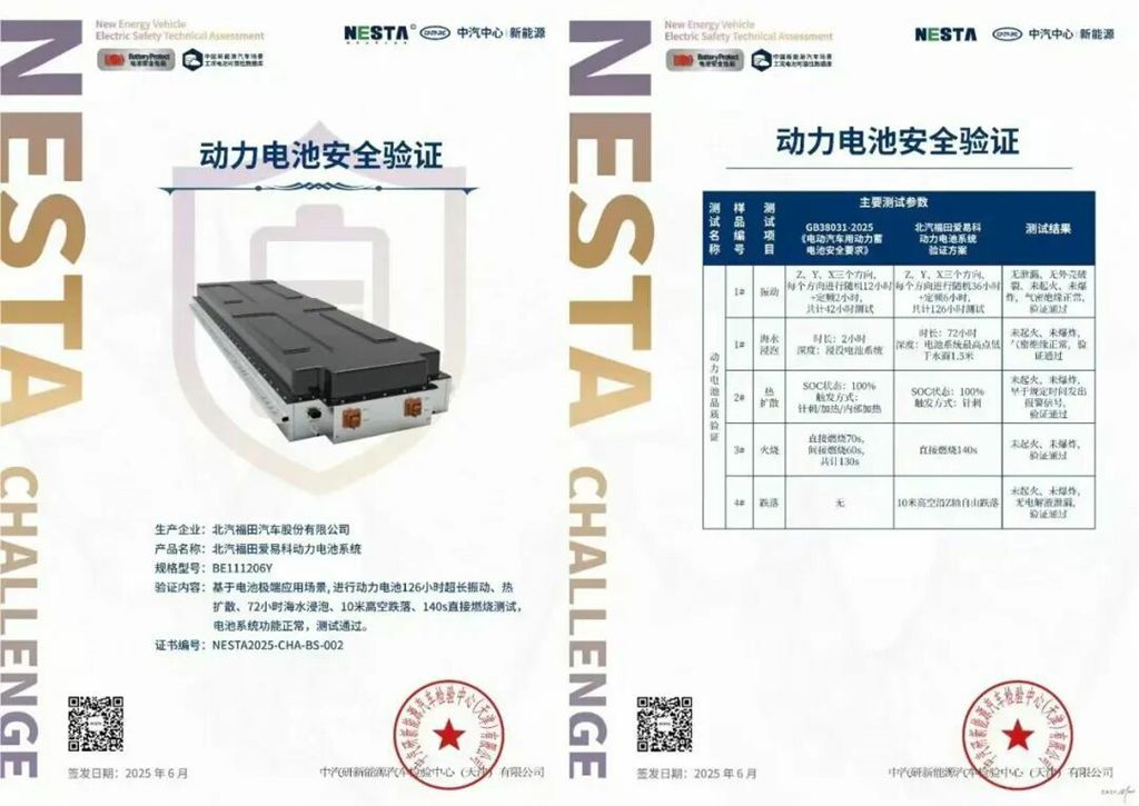 2025年4月,工信部发布的强制性国家标准《电动汽车用动力蓄电池安全要求》,给所有电池品牌设置了全新的门槛。尽管新国标明年7月才实施,但对福田爱易科的动力电池来说,新国标只是起始线,它的目标是更强的性能和更高的安全。