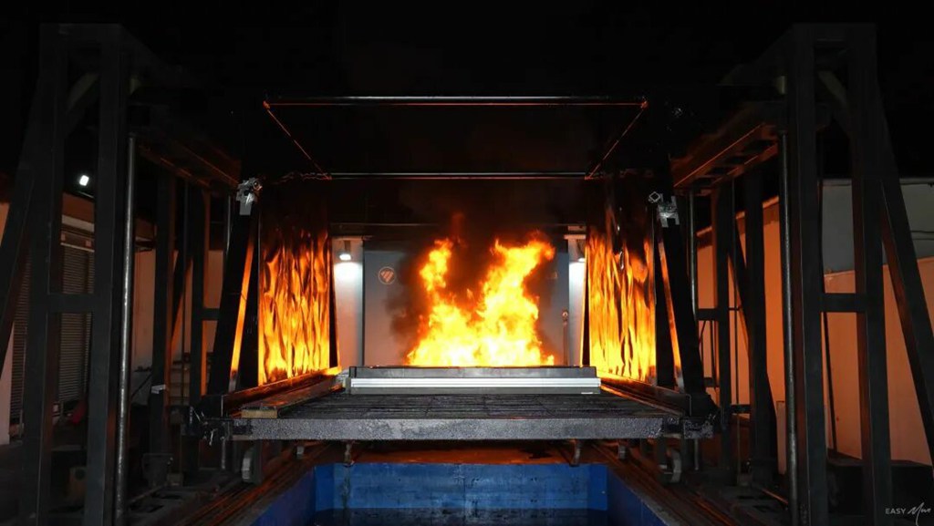 对动力电池来说,过热带来的风险永远是最危险也最可怕的。外部火烧和热扩散考验,是任何电池品牌在新国标实施前必须攻克的技术难题,也是用户关注电池安全的最大焦点。爱易科动力电池通过采用电芯高安全磷酸铁锂正极材料,电池材料热分解温度可以达到800℃以上;而且,电池模组内部采用气凝胶材料置于电芯之间,起到隔热、阻燃作用。就算出现发热情况,在热失控发生后69秒就发出报警信号,电芯之间的气凝胶发挥阻挡热蔓延的功效,延缓热量传导速度,可实现电池在触发热失控后保持2小时无明火、无爆炸,且无危险烟气产生。