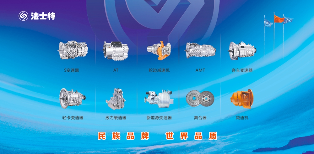 依靠科技进步和自主创新,法士特自主研发推出的AT、AMT、S变速器、客车变速器、轻型变速器和液力缓速器、离合器、减速机等八大系列新产品以及轮边减速机、新能源汽车传动系统等新能源产品,以系列延伸、全域覆盖的特性被国内外150多家主机厂的上千种车型选为定点配套产品,广泛配套重卡、中轻卡、牵引车、载货车、自卸车、客车、专用车、工程车等各种车辆。2019年,法士特结构调整持续优化,新旧动能转换不断提速,新业态开始发力,新格局正在构建。法士特马兹公司、西安出口基地、宝鸡中轻型变速器基地、咸阳液力缓速器生产基地等新动能,不断扩大企业规模效应,生产布局更具科学化、规范化、专业化,单月产销量多次突破10万台,变速器传统机械型变速器市场稳固,智能化、新能源产品的市场需求不断增长,成为企业经营效益提升的重要支撑。这标志着法士特结构调整取得实际效益,企业产品线正沿着高端化、智能化、多元化的既定方向稳步转型升级。