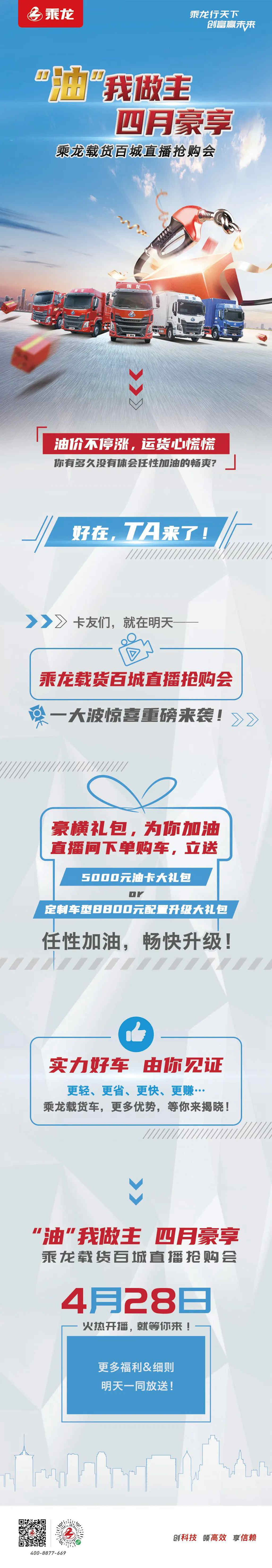 “油”我做主,四月豪享!乘龙载货百城直播抢购会,明日火热开播~