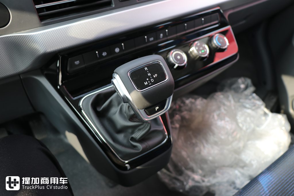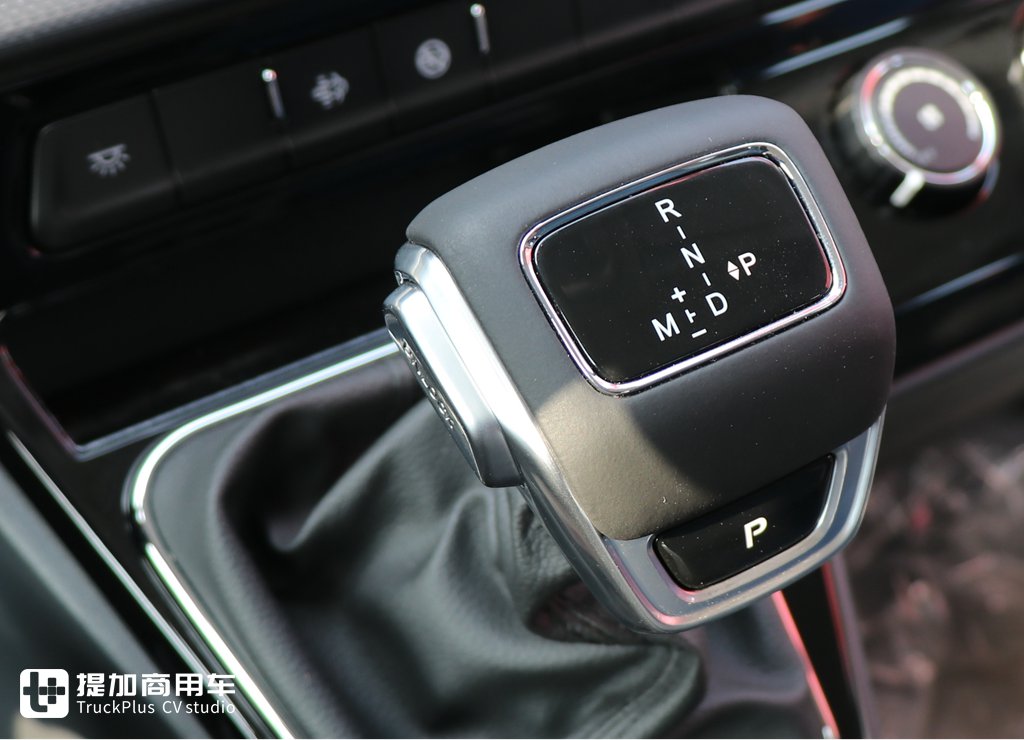 实拍车型为自动挡版本的东风御风V9+,挡把造型类似飞机挡把,入挡时有指示灯提示,向左甩切换手动模式,按下P的按键即可自动挂入驻车挡,操作与小车无异,上手特别容易。