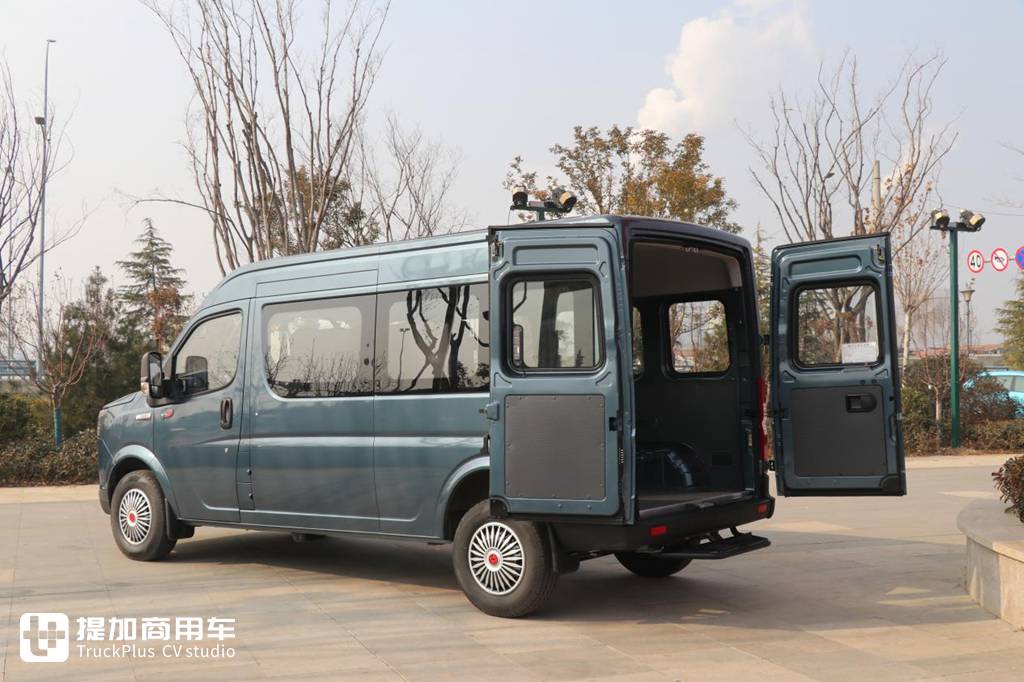 东风御风V9+又称百变轻客,因为这款车的定制化程度非常高,前面我们讲了这款车可以选客运版、封闭式货车和明窗物流车,不仅如此,东风御风V9+还为用户提供了前驱、后驱两种驱动形式。有5米/5.5米/5.75米及5.99米四种车长,配合低顶、中顶、高顶不同高度,提供丰富的空间选择。。
