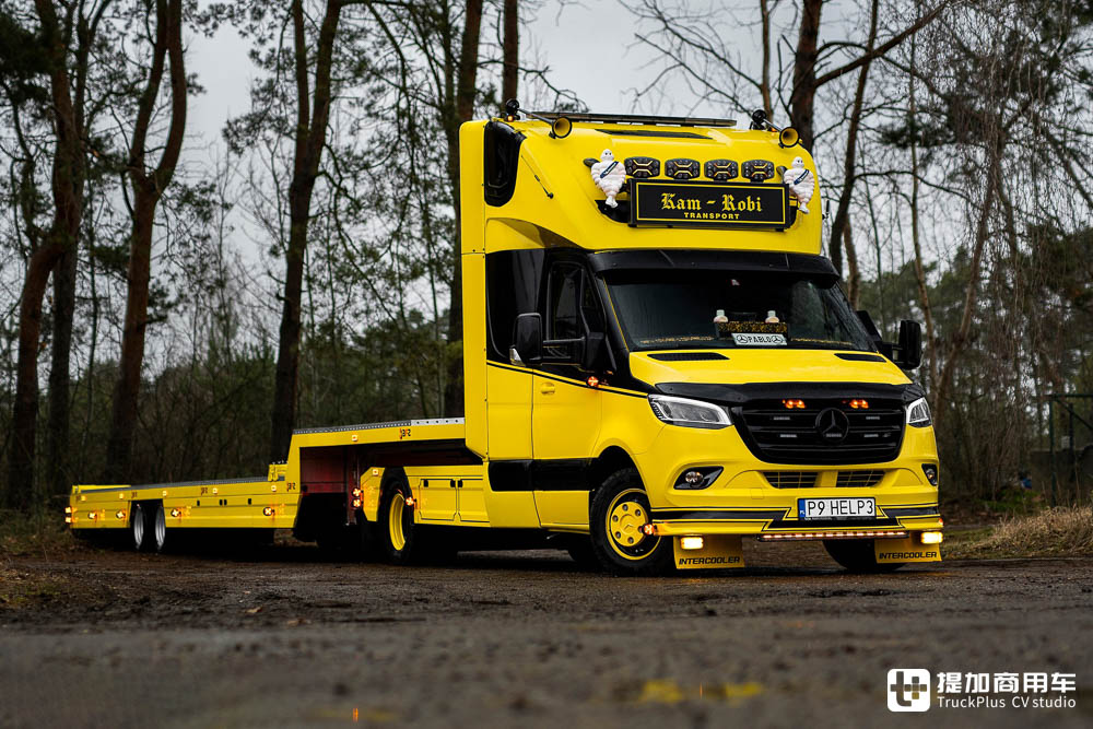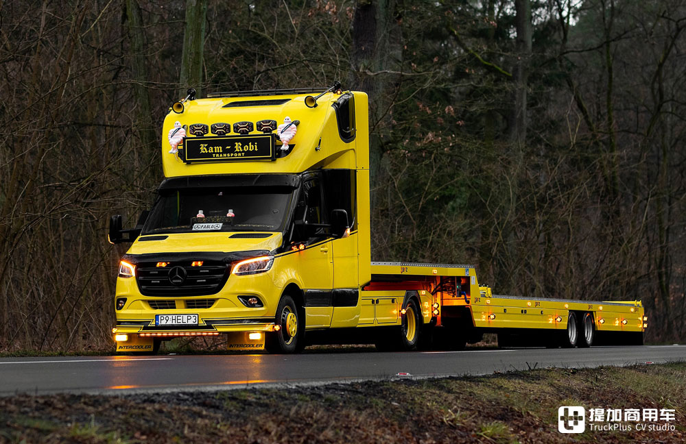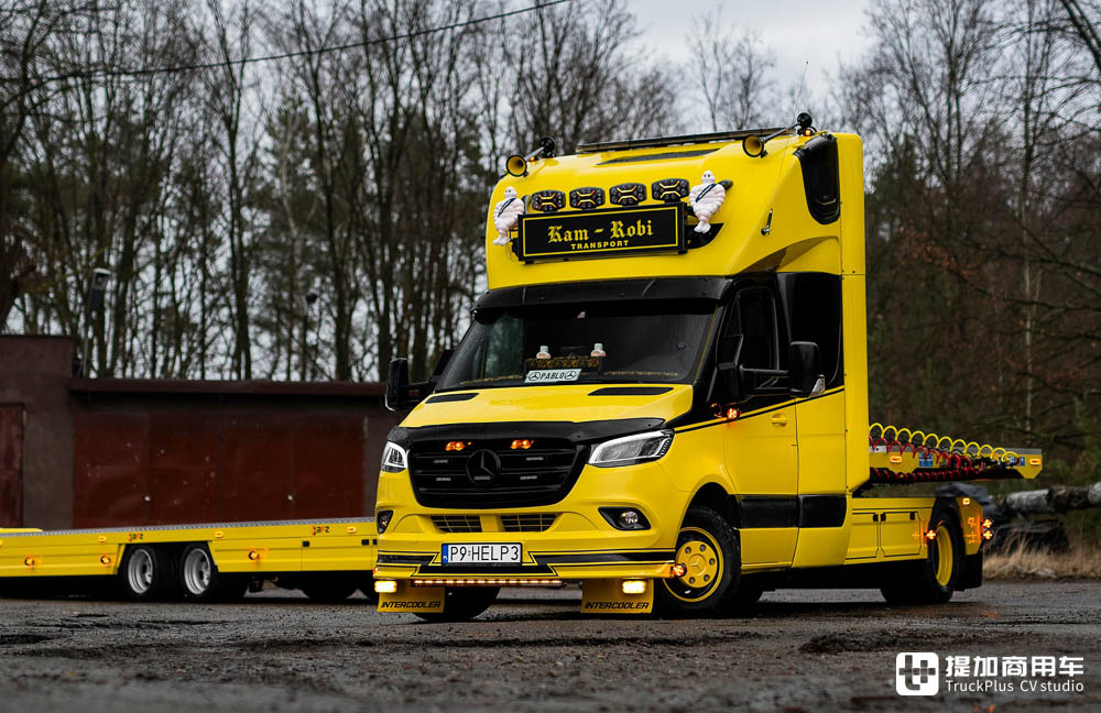在今天的文章中,我们要为您介绍的便是一台改装了生活舱的奔驰凌特519 CDI,它还被改装成为牵引车,由波兰Kam-Robi公司使用。这家公司是一家租赁公司,从乘用车到商用车都可供租赁,旗下共有70余台车。这台爆改凌特主要用于运输公司租赁出去的车辆,同时也配备了专门的配件,可用于运输游艇等高价值货物。