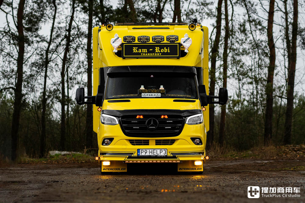 2023年初,完成爆改的它正式投入了实际运行。在车身涂装方面,该车保留了Kam-Robi公司亮眼的电光黄色,明亮的色调让其能够在车流之中脱颖而出。在此基础上,车辆对前格栅进行了整体熏黑,并且引擎盖下端也增加了黑色喷涂,与前格栅融为一体,显得车辆前脸大气许多。