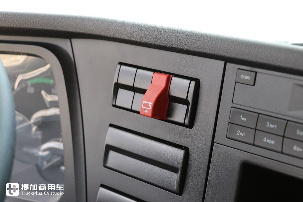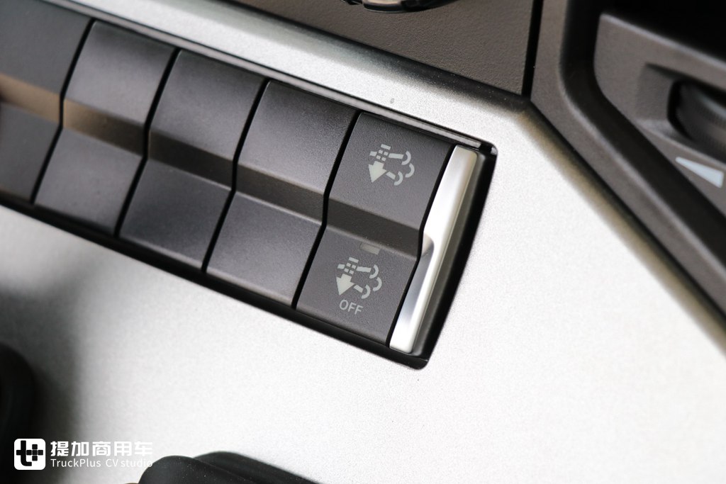 车内的电源开关也是危险品车不可或缺的配置,相较于传统的单开关,奔驰Actros在上面增加有保护罩,以防驾驶员误触。