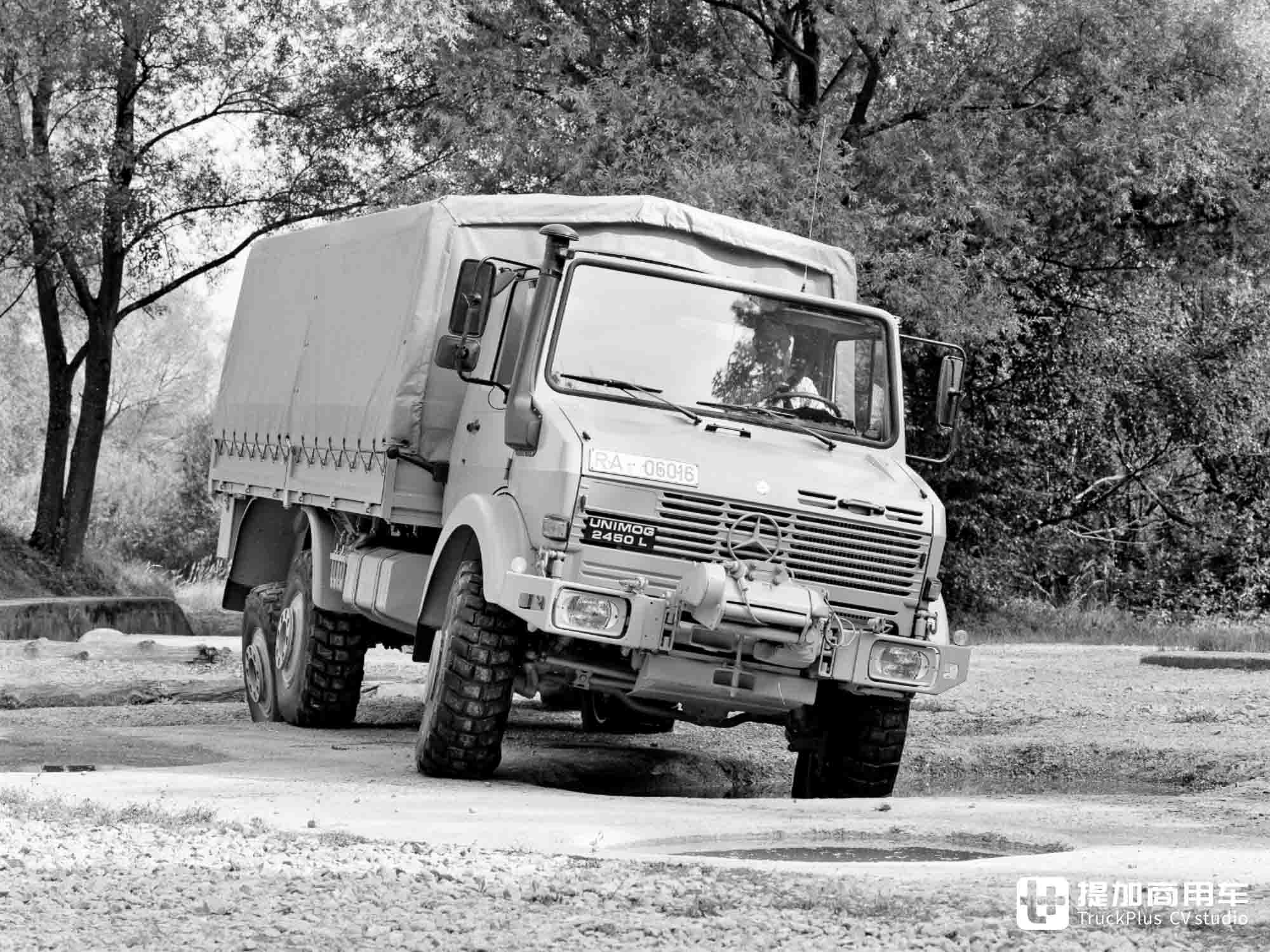 将时钟拨回到上个世纪:针对特殊用户的重载越野需求,奔驰开发了6x6的乌尼莫克特种型号:U 2450。这款车型属于乌尼莫克437.1系列,代表乌尼莫克的中型、重型系列车型。作为一款极其罕见的乌尼莫克6x6车型,U 2450仅生产了200台,如今的存世量更堪称稀少。