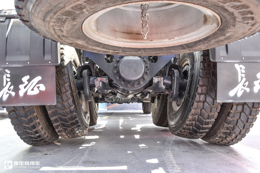 前、后桥及悬架原汁原味保留了太脱拉的设计精髓,零部件从太脱拉进口。前桥8吨级,独立悬架采用纵置扭杆弹簧,和太脱拉设计是一样的。制动系统是不常见的楔形鼓式制动器。