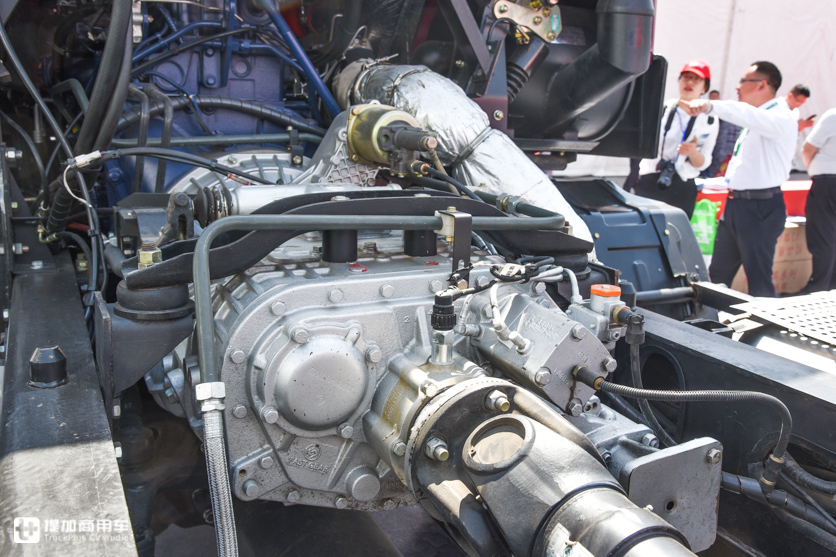 匹配的也不是采埃孚变速器,而是国产潮牌法士特12JSD160TA手动12挡变速器,铝合金壳体,最大允许输入扭矩1600Nm,与1700Nm扭矩的发动机匹配有点不足。