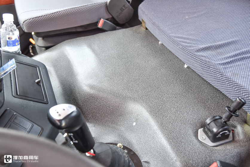 “豪华型”驾驶室不是平地板设计,地板中间凸起与卧铺基本持平,活动空间较小。