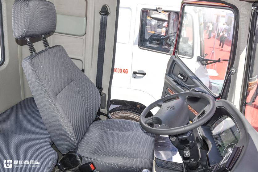 正面一个大大的长征汽车LOGO算是表明了身份,驾驶室仅使用螺旋弹簧减震。