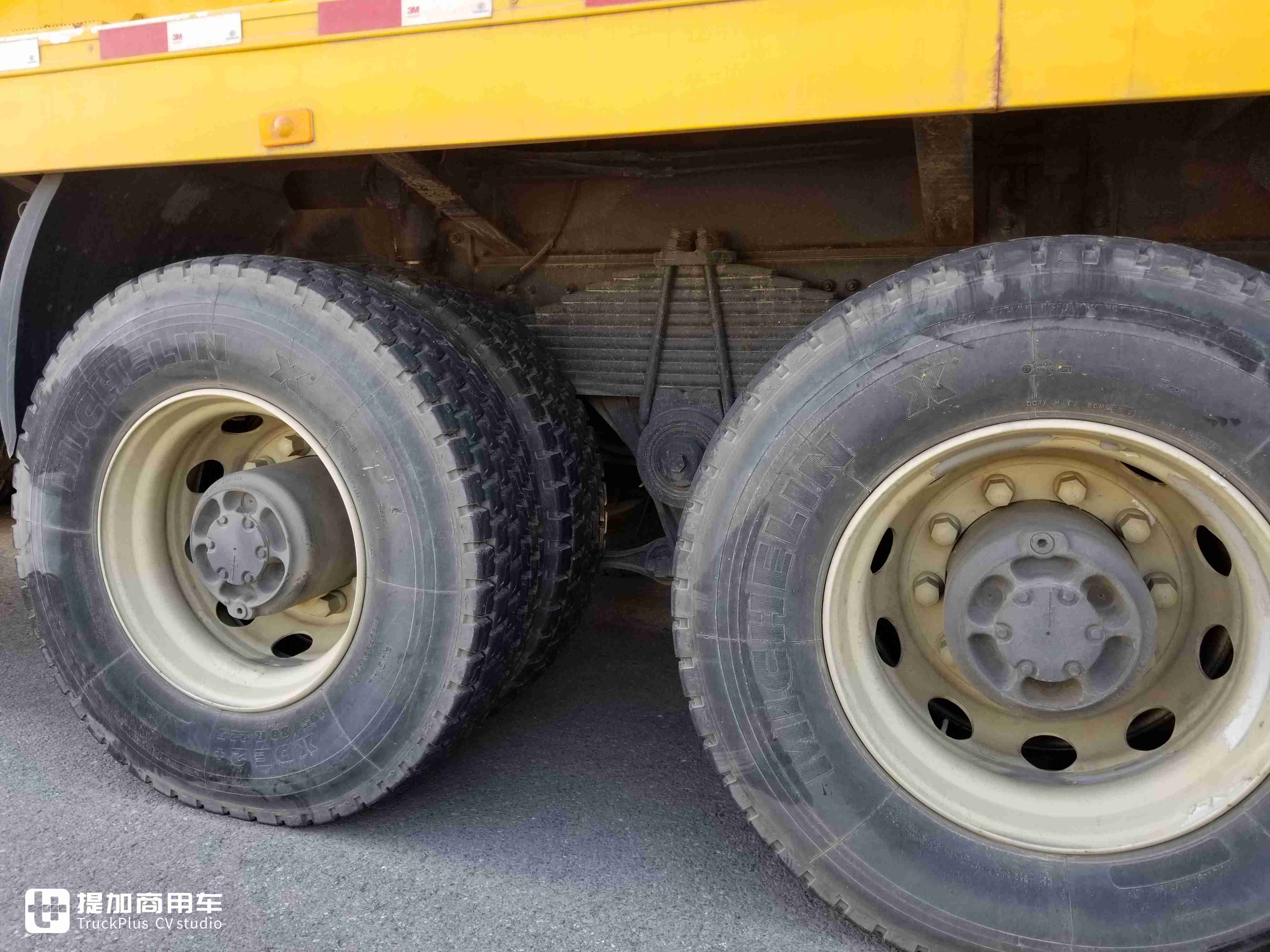 该底盘采用8x4的驱动形式,在国内此类底盘的沃尔沃卡车车型并不常见,大多被用于改装泵车或者主战消防车等特殊车辆。细心的读者会发现此车驾驶室略向前倾,这是由于车辆变速箱出现故障,需要维修,才将驾驶室略微进行了升起。