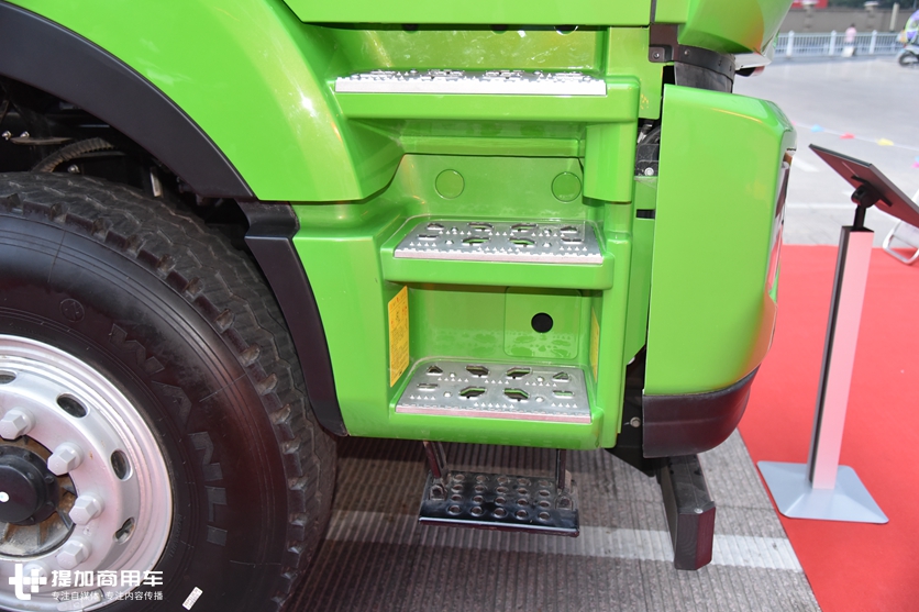 2020款格尔发系列蹬车踏板经过全新设计,三级蹬车踏板面积更大,并且加入镀锌防滑板,即使在泥泞工地,也能保证驾驶员上下车的安全性。最下一级踏板为或活动式,这是常规做法,作用是避免因陷车而蹭坏蹬车踏板。