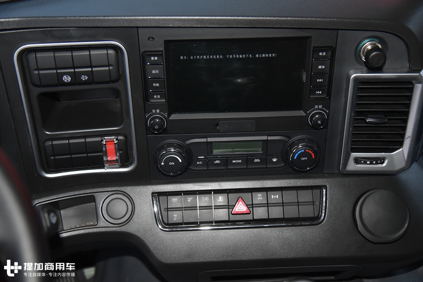 中控台上大屏MP5的加入,这种配置在工程车领域可以说极其少见的。MP5功能设计合理,一些常用功能被单独预留了按键,比如说一键导航、一键音乐、一键电话等功能,这种设计的理念是为了避免了车辆在行驶过程中驾驶员操作按键时的误触。