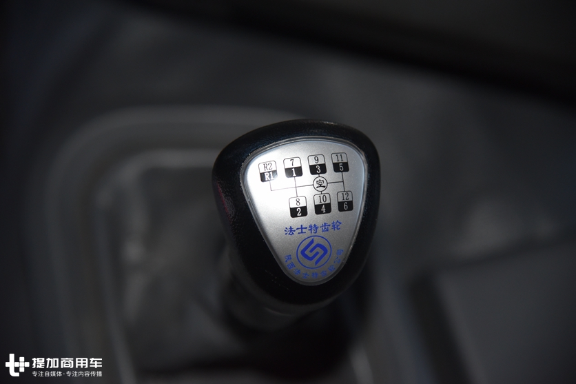 变速器来自国内一线品牌法士特,12挡手动,型号12JSD200T-B+QH70,该变速器采用全铝外壳,最大输入扭矩2000N.m,与发动机1800N.m的扭矩相匹配。