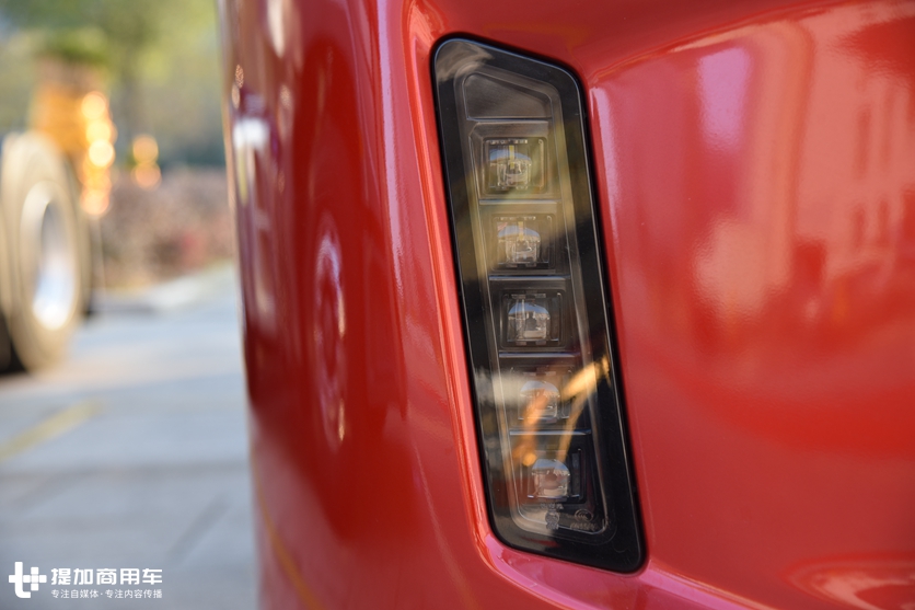 组合式灯光是现代卡车的标准设计风格,V7也不例外,只不过V7的组合灯光有着更多的组合功能。透镜灯可以增加灯光亮度,让行车环境更加安全。还有除了转向灯是LED光源外,灯光内还有两组LED光源,包括两组日间行车灯,比其它车型多出一组光源。另外,保险杠上还多出一组LED光源,由5颗LED组成,体积更大,可提供的光源也更充足。