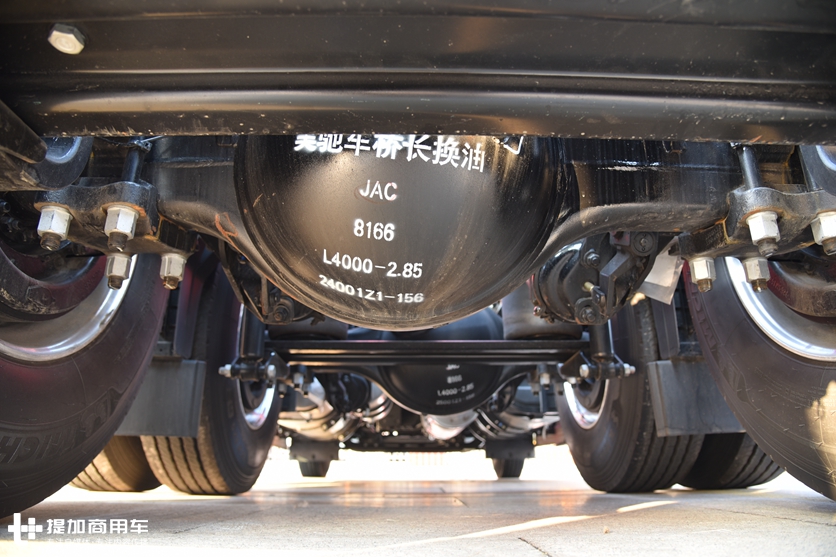 另外,格尔发在V7之外的车型上,会匹配JAC跨越专用车桥,并且还会在车桥上喷涂类似字样。但V7 明显不一样,车桥上喷涂了美驰车桥长换油字样。另外,2.85的车桥速比,在同级别车型中已经是非常小的速比了,这预示着V7有着更经济的巡航速度。