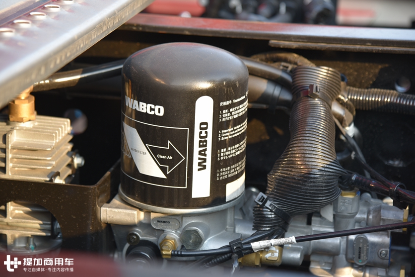 全车匹配威伯科泵阀,这是旗舰车型的标准做法,不管是自主品牌还是欧洲品牌,都会这么做,而这么做可以带来两个维度上的优势,第一是向外界传达一个旗舰车型所具备的品质;第二是告诉消费者,我们是最安全的卡车。