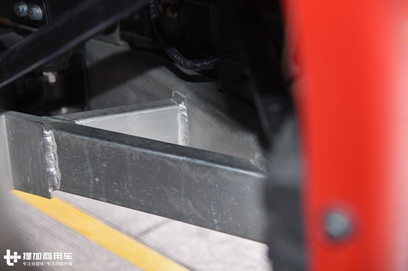需要注意的是,V7的推力杆不同于K7,也不同于其它车型,它的推力杆方式改成了横置方式,两根推力杆分布在车架前后位置,都是横置。这种新的推力杆结构目前还有两个品牌在使用,包括天龙KX、KL和柳汽乘龙H7、T7在内,都在使用这种结构,那么从这个共性上来看,格尔发V7拥有着和东风系相同的底盘结构。