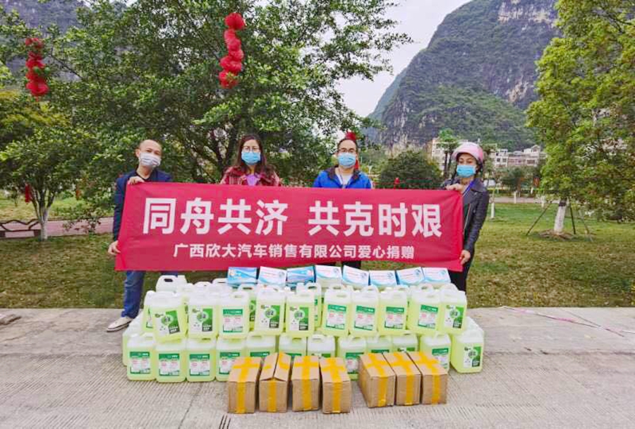 不仅如此,各办事处还纷纷为当地奋斗在防疫一线的工作人员送上自己的一份心意。郑州办事处联合头部客户分别为当地疫情防护点、交警支队以及环卫处送去口罩、消毒液等抗疫物资。南宁办事处也积极行动,为河池市都安县文旅局送去口罩、84消毒液、免洗消毒洗手液等物资,彰显了企业的责任与人文关怀。
