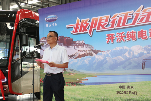 拉萨市张文浩副市长、江苏省工信厅周毅彪副厅长、南京市政府包洪新副秘书长、开沃集团副董事长丁星胜等领导共同出席,见证开沃纯电动车发车自南京奔赴西藏拉萨的极限征途。这段征途横贯我国大陆东西,穿越江苏、安徽、河南、陕西、甘肃、宁夏、青海、西藏等省份及自治区,堪称行业内“史诗级交付”。