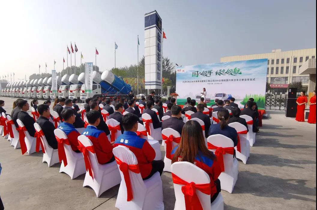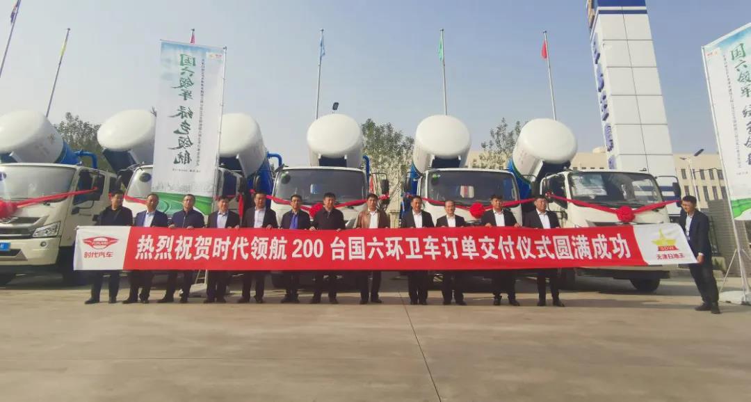 国六领军 绿色领航,200台时代领航国六环卫车圆满交付
