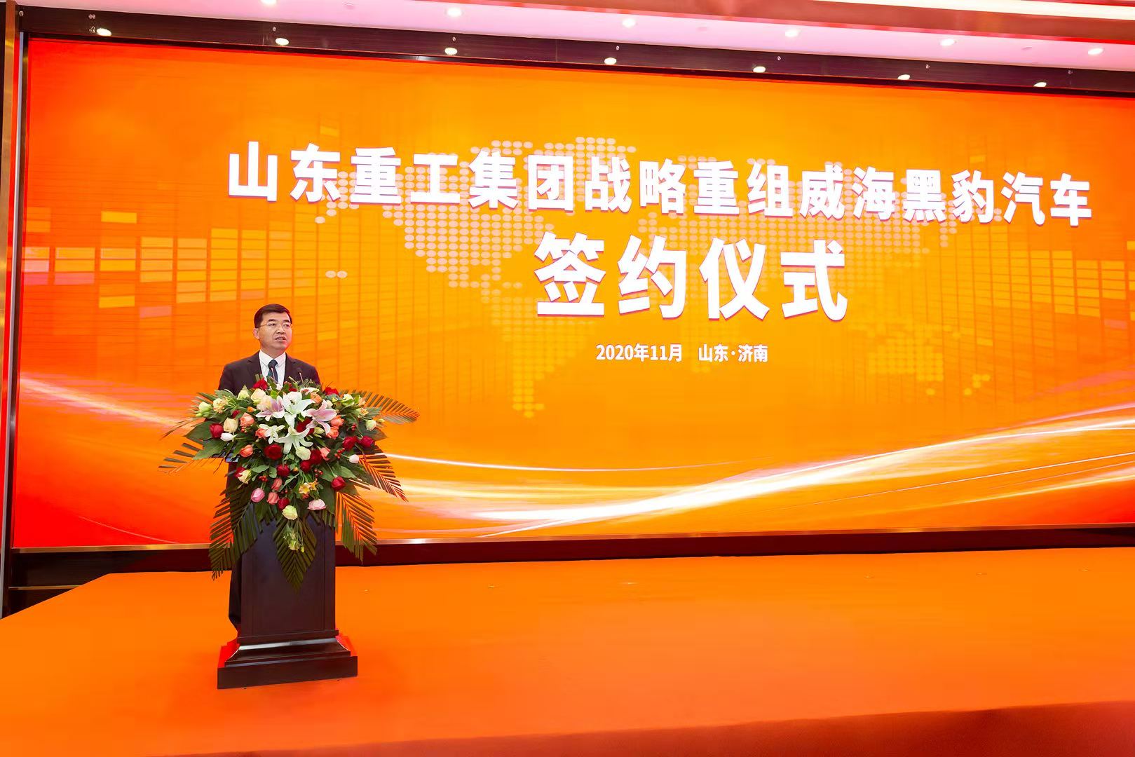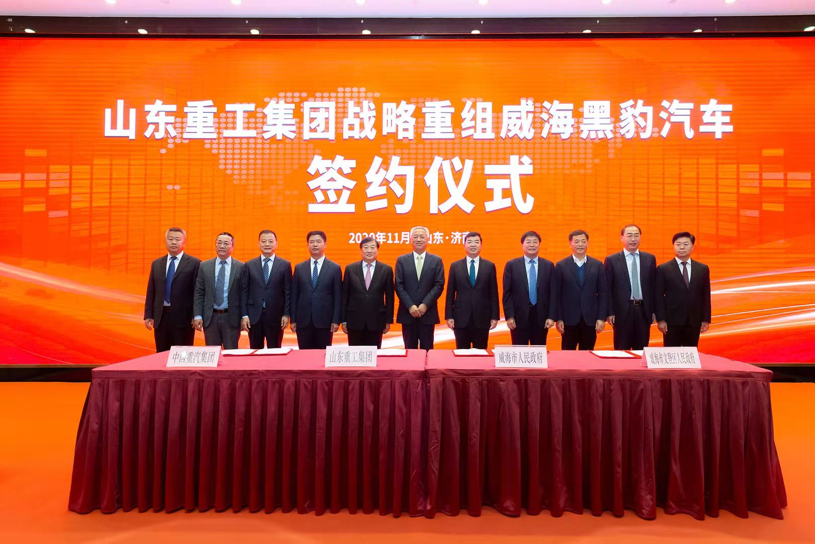 11月10日上午,山东重工集团战略重组威海黑豹汽车签约仪式在山东济南举行。山东重工集团、中国重汽集团与威海市政府、文登区政府签署四方协议。中国工程院院士、山东省副省长凌文及省国资委、省工信厅、威海市、文登区相关领导出席活动。