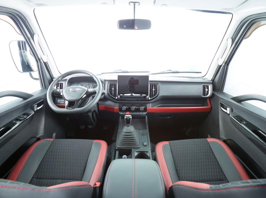 为提升座舱舒适性,领航S1小卡将多功能方向盘、冷暖式一体空调等轿车化配置引入小卡,使得操控更便捷,驾驶体验进一步提升。其领先于行业独家推出液压减震座椅,能根据体重选择调节减震的强度,有效缓解了驾驶疲劳,降低了行车危险系数。同时,领航S1小卡还配装10.1寸触摸式显示屏,具备倒车影像,支持多向智能娱乐功能,为卡友建立了一个智悦舒适的工作、娱乐环境。