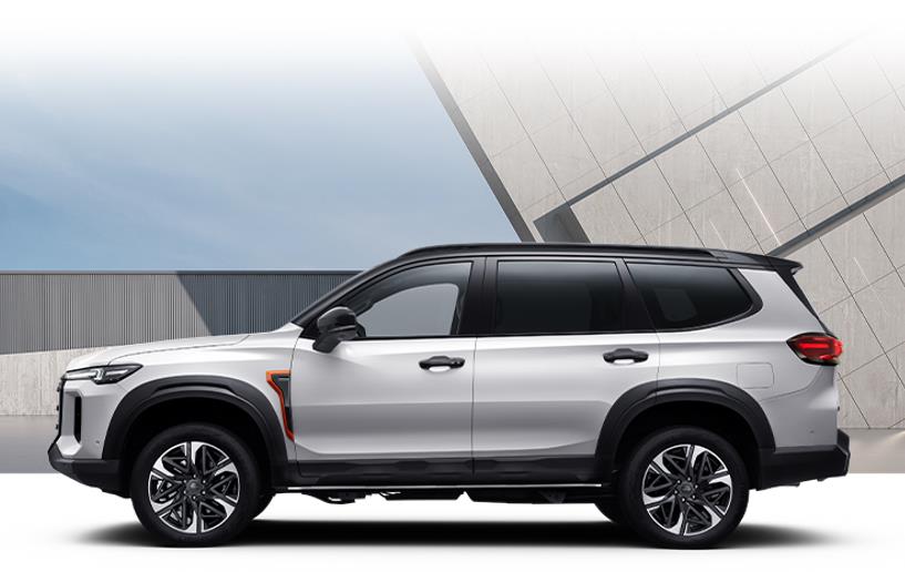 颜值不设限:新车机甲风的造型充满硬派力量,其张力十足的流线型车身、珠光车漆,使领地极具豪华质感。内饰设计采用了硬核科技美学,强化机能感,既能精准操控车辆,又不失奢华格调。领地还是国内首台采用怀挡加拨片设计的硬派SUV,可释放副仪表台模块化储物空间,满足用户更多变的用车场景。