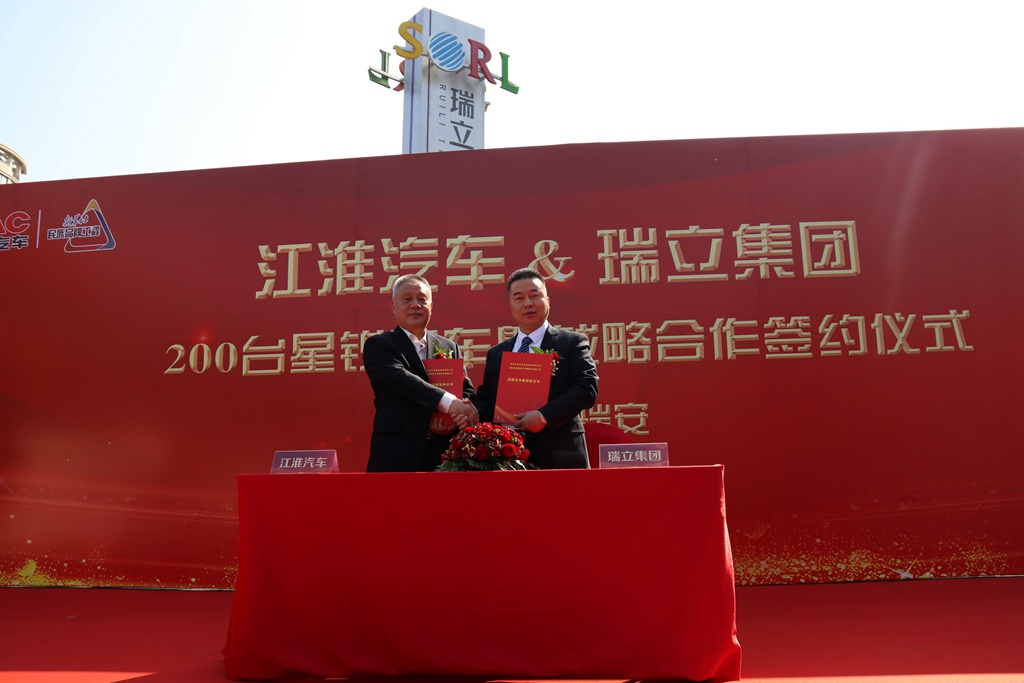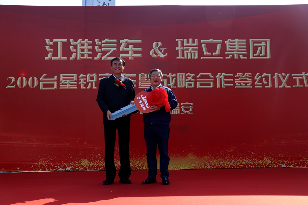 活动现场,江淮汽车还与瑞立集团正式达成了战略合作关系。瑞立集团计划采购200台江淮星锐,而在首批45辆交付之后,剩余的155辆江淮星锐将在装备完成之后交付给瑞立集团。随着未来双方合作的深化,强强联合为物流运输赋能,携手并进一同打造更加高效环保的物流生态。