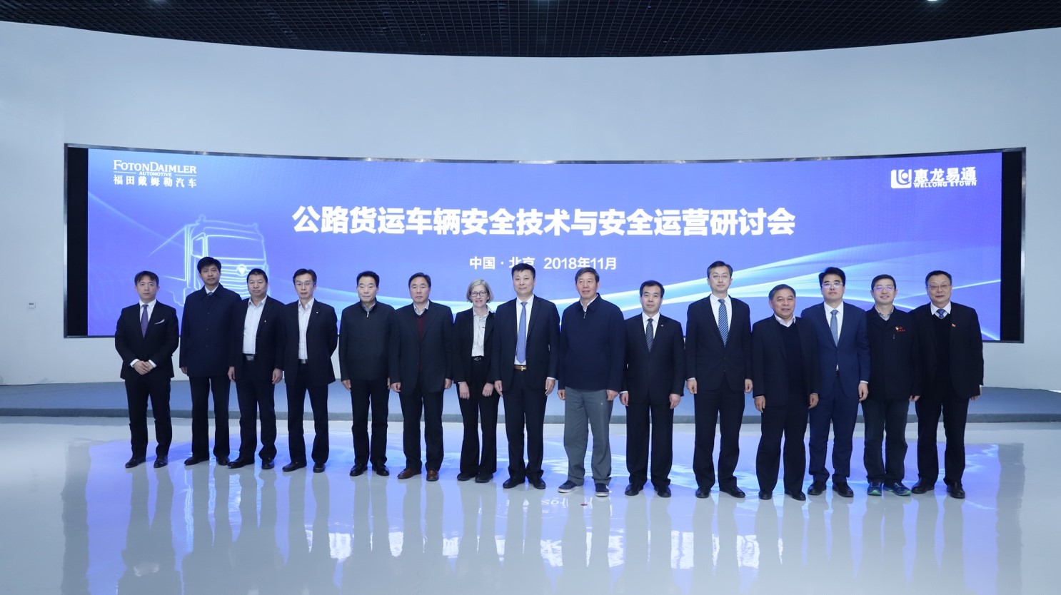 2018年11月28日,“公路货运车辆安全技术与安全运营研讨会”在北京福田戴姆勒汽车有限公司召开,探讨如何从运输装备升级和安全技术应用等方面,进一步推动我国道路运输行业安全及高质量发展。交通运输部道路运输服务司司长徐亚华、商丘市人民政府副市长倪玉民、建设银行住房金融与个人信贷部副总经理孟国鸿,首钢股份公司营销中心副总经理肖京连,惠龙易通董事长施文进等人莅临研讨会现场,并对福田戴姆勒汽车进行了深度调研。北汽集团总经理、福田汽车董事长张夕勇,福田汽车集团党委书记、总经理巩月琼,福田汽车集团副总经理、福田戴姆勒汽车执行副总裁张伟,福田戴姆勒汽车总裁Kelley Platt等领导携核心团队进行了重要接待。