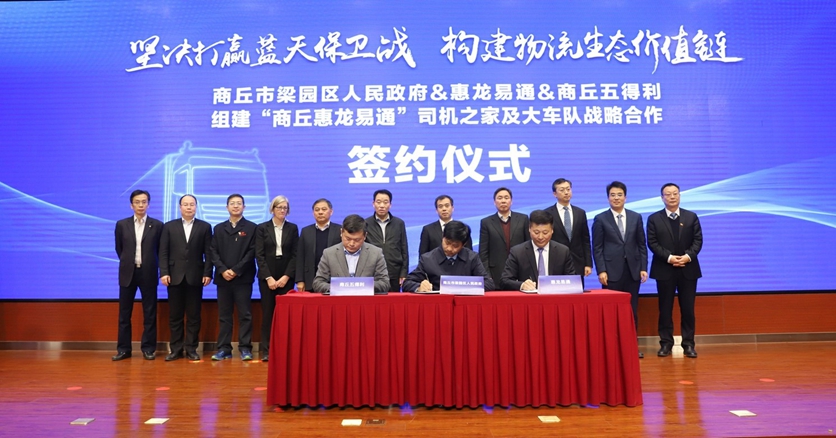 商丘市梁园区人民政府与惠龙易通与商丘五得利举行了组建“商丘惠龙易通”司机之家及大车队战略合作签约仪式