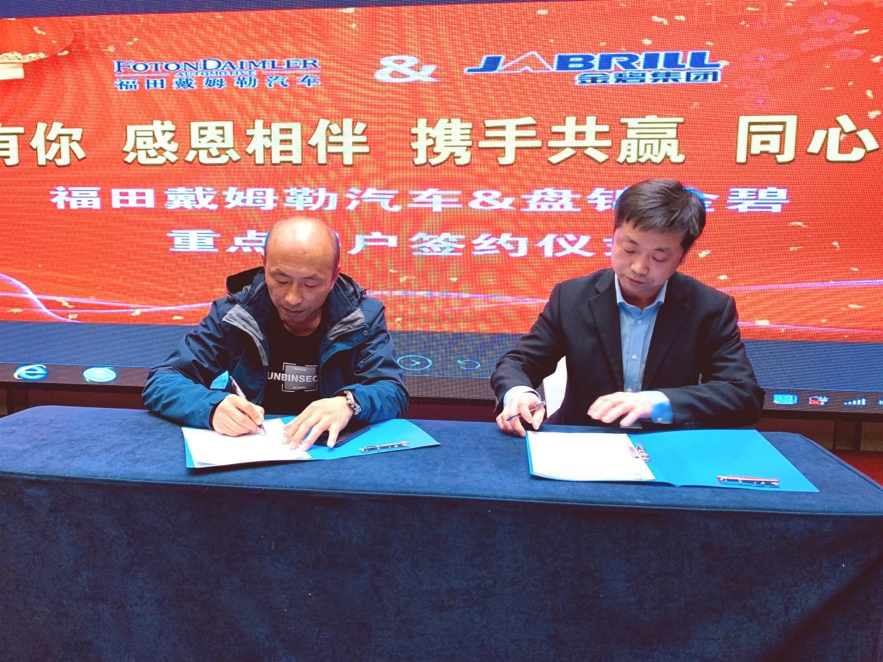 在活动的最后环节,进行了重点客户签约仪式。盘锦重信运输有限公司与盘锦连江物流有限公司分别与福田戴姆勒汽车达成了100台车的签约仪式,这不仅宣告了2019年福田戴姆勒汽车在东三省危化品业务开门红的打响,更说明了客户对福田戴姆勒行业解决方案的认可,同时宣告了福田戴姆勒由产品买卖到整体方案保障服务转型的成功。