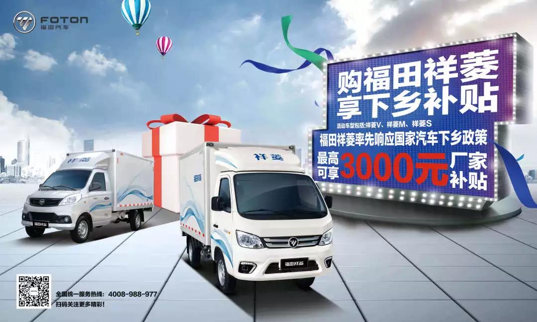 同时,福田祥菱还为新用户购车带来了2年“0”利率,以及国Ⅴ2000元、国Ⅵ3000元换购补贴政策。如此强有力的补贴举措,必将驱动福田祥菱在汽车下乡大道上跑出新的加速度。