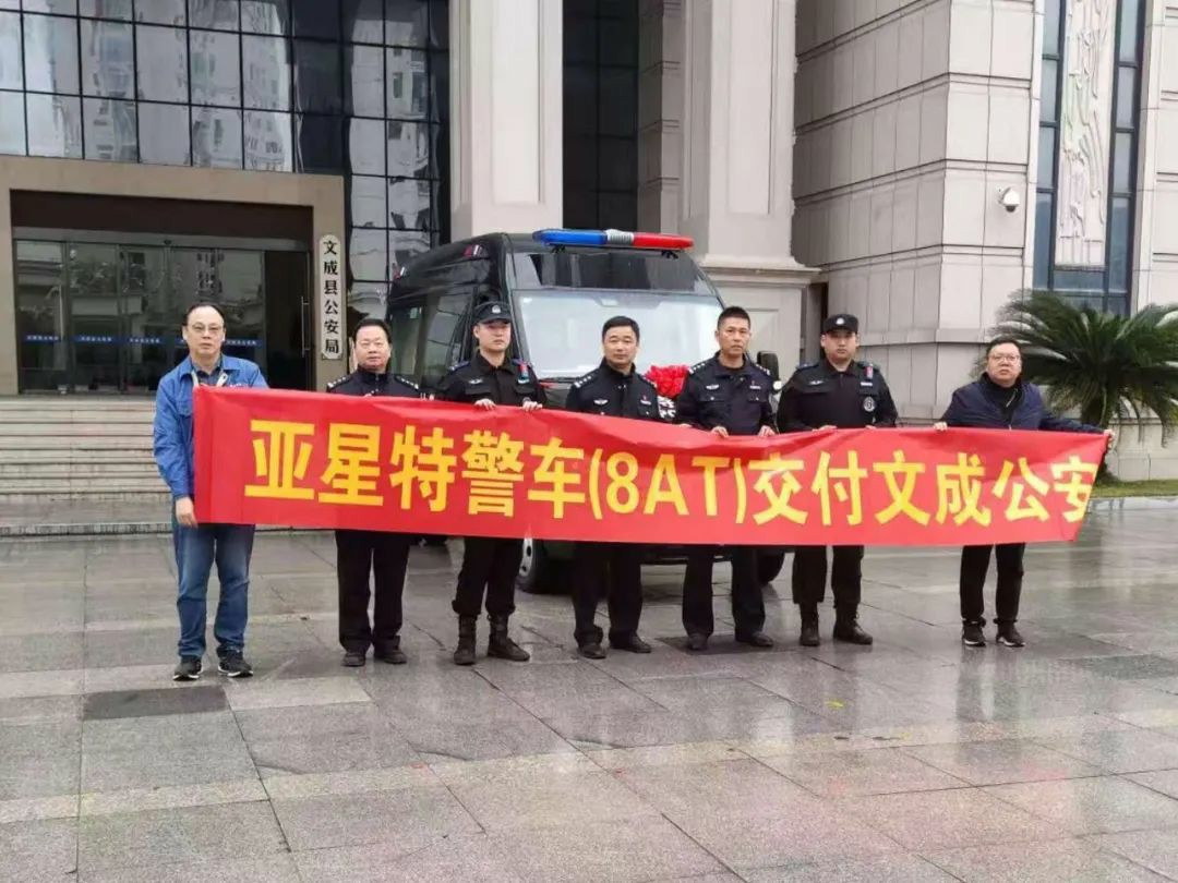 11月25日亚星向浙江省文成县公安局交付14座自动档柴油特警车用于文成县公安局警力运输。助力文成公安局打造“人民公安为人民平安”的品牌形象。