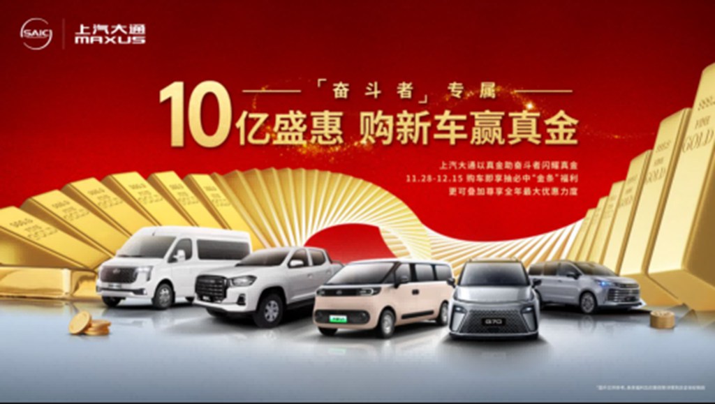 10亿盛惠,购新车赢真金!上汽大通MAXUS史上规模最大、送品最壕的年终购车盛宴来了
