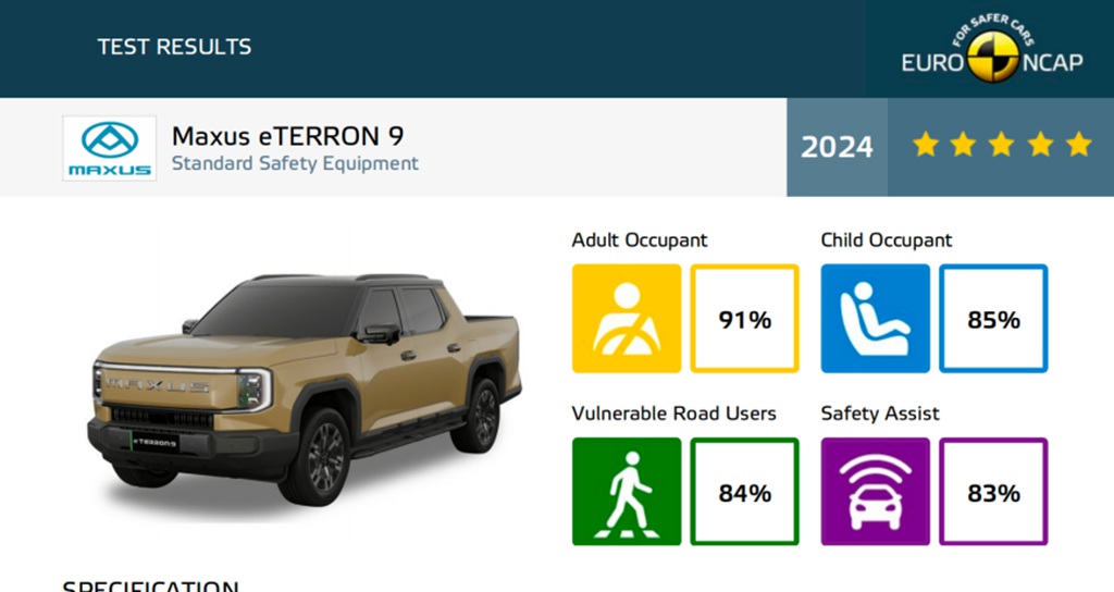 用全球高品质锻造“五星大通”!近日,2024年最新一期Euro NCAP(欧洲新车安全评鉴协会,以下简称Euro NCAP)安全碰撞测试结果公布,以“全球首个出口海外的中大型中国品牌纯电皮卡”身份出征欧洲市场的eTerron 9,斩获顶级“五星安全”评级,成为首款且唯一一款获此殊荣的纯电皮卡。