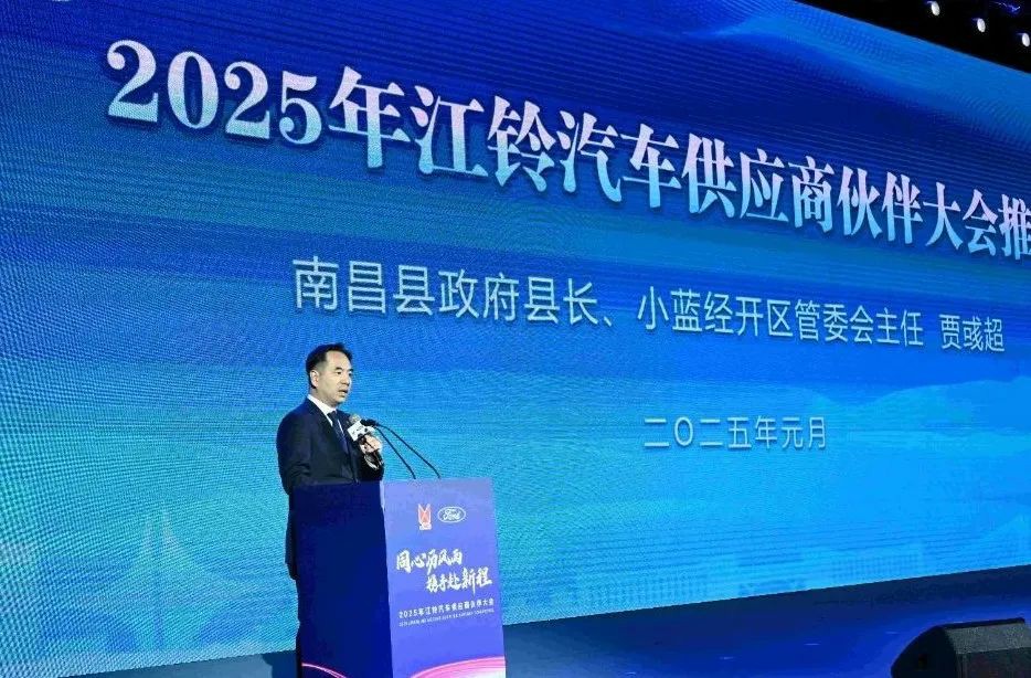 贾彧超在大会上向大家介绍了南昌县及小蓝经开区的营商环境和相关优惠政策。他表示,江铃汽车作为南昌先进制造的龙头企业,积极践行南昌汽车及装备产业链高质量的发展战略,努力以自身实力吸引和带动零部件企业就近配套集群发展。他真诚邀请江铃供应商伙伴、广大企业家多关注南昌、了解南昌、投资南昌。