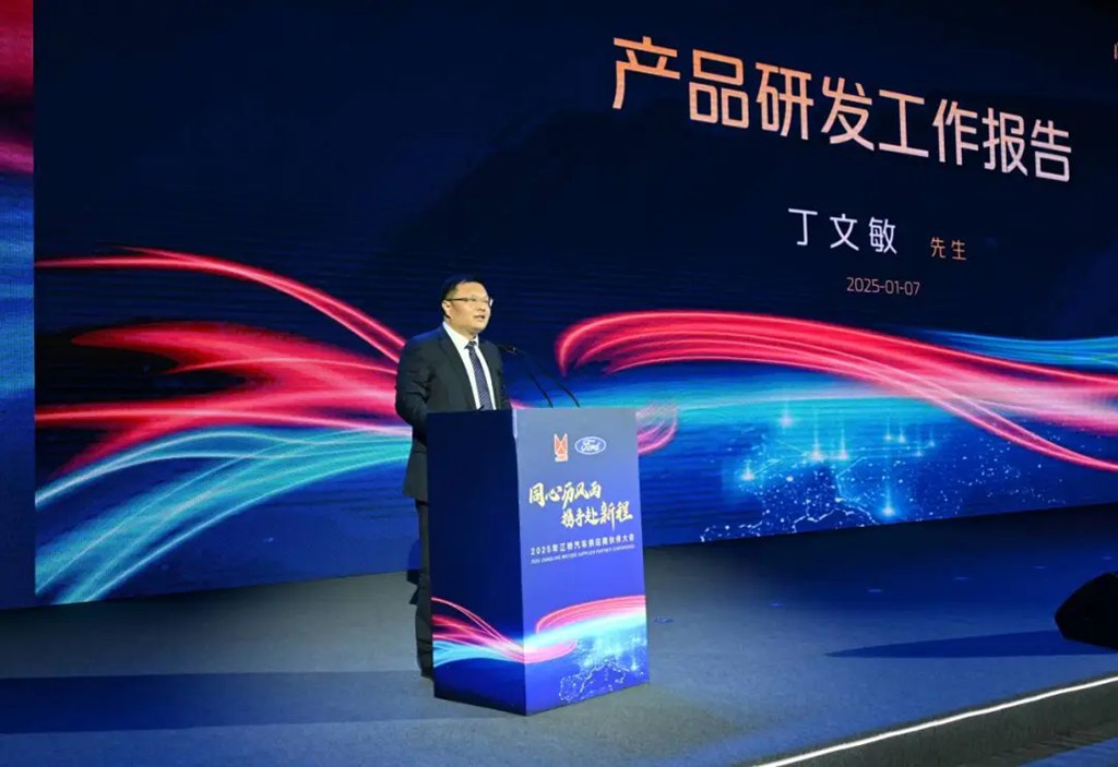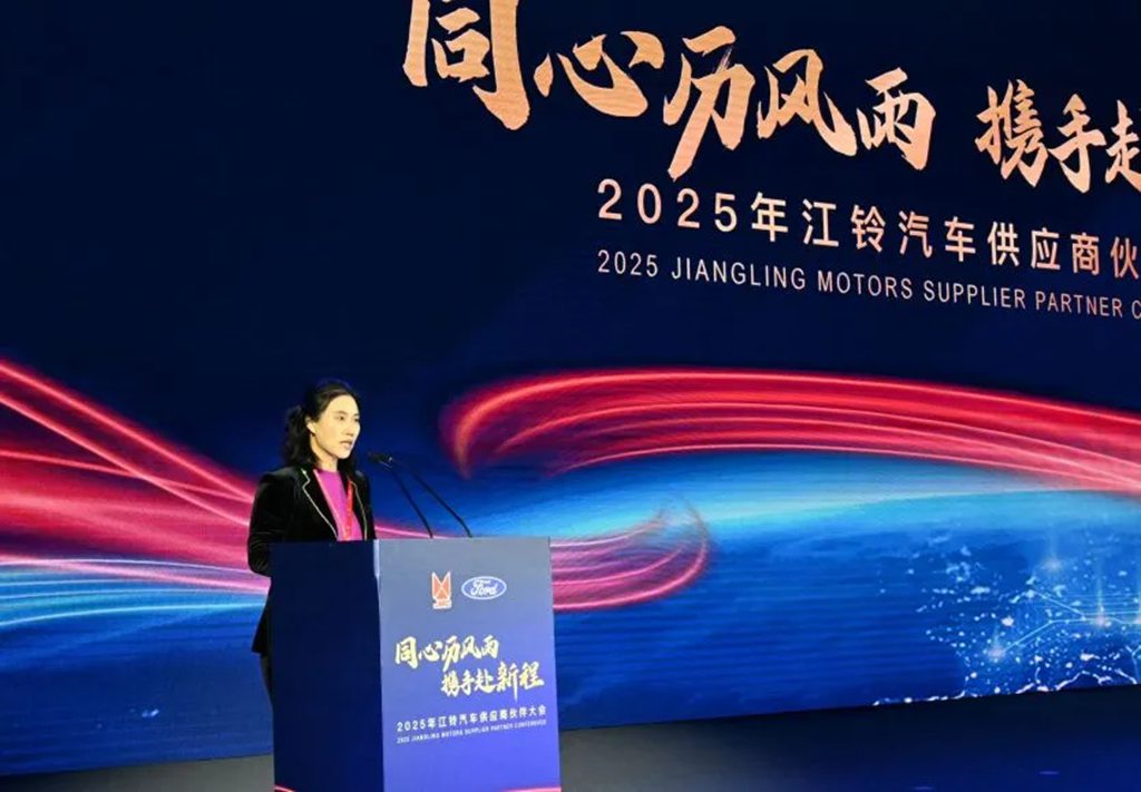 “面对行业内卷加剧,我们要如今天大会主题‘同心历风雨、携手赴新程’一般,团结在一起,这是我们迎难而上、再攀高峰的坚强底气。”邱天高向与会嘉宾表示诚挚欢迎,向一如既往关心支持江铃发展的供应商伙伴表示衷心感谢。2024年,江铃汽车顶住了商用车行业下行压力,取得了逆势增长的亮眼成绩——整车销量超过34万辆,出口销量突破11万辆,双双创下历史新高,同比都实现了两位数的增长,进一步巩固了轻型商用车核心竞争力。轻客、皮卡和轻卡销量持续领跑行业,轻客和皮卡的市场份额稳中有升。其中,明星产品福特烈马SUV自上市以来,迅速成为国内硬派SUV的领导者,全年销售过万辆,在30万以上的非承载式车身油车市场的市占率位居第一。他表示,过去一年取得的这些成绩,离不开每一位江铃人的拼搏奋进,这些得到市场热烈反响的产品也是在座各位供应商伙伴悉心呵护的结果。未来,江铃将与供应商伙伴继续携手,开展更有价值的专业化协作,开创美好未来。