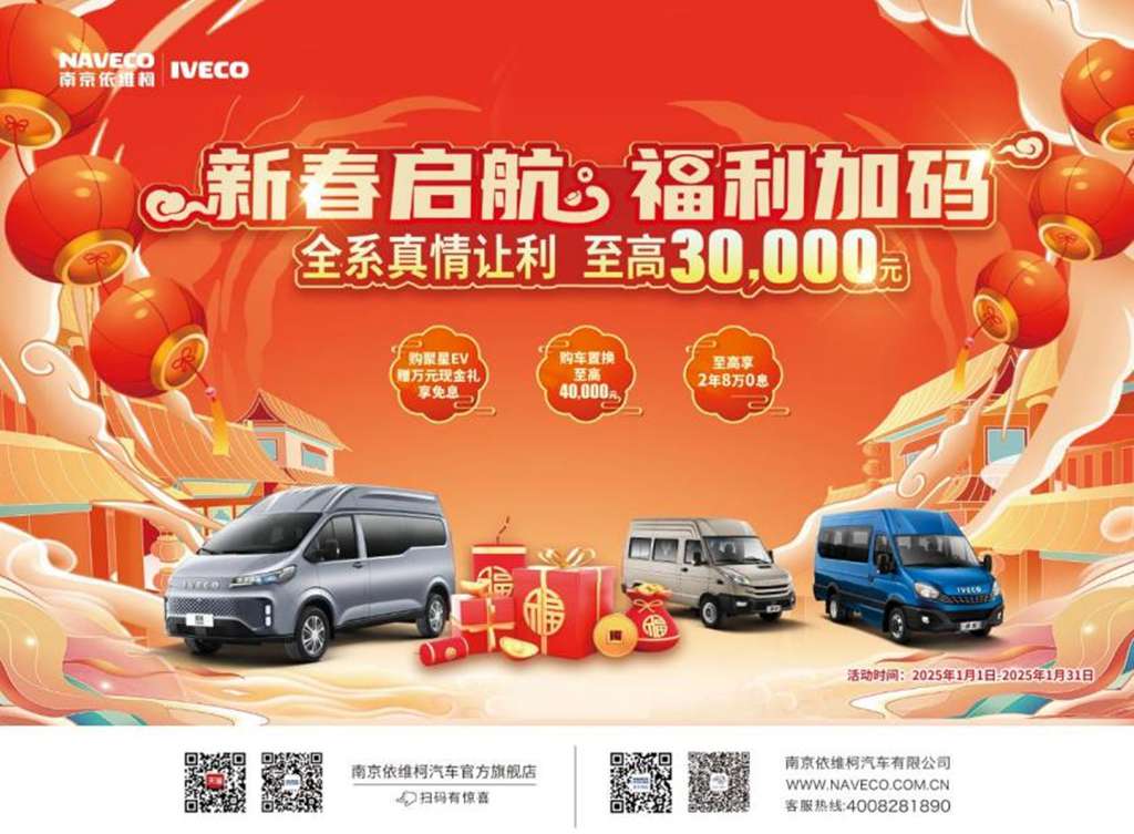 家人们,又到了年前购车的好时机啦!本月,南京依维柯带着满满的诚意开启了2025年购车盛惠活动,旗下多款明星产品参与其中,购车优惠政策相当吸引人,赶快参与购车活动,开着新车回家过大年啦!