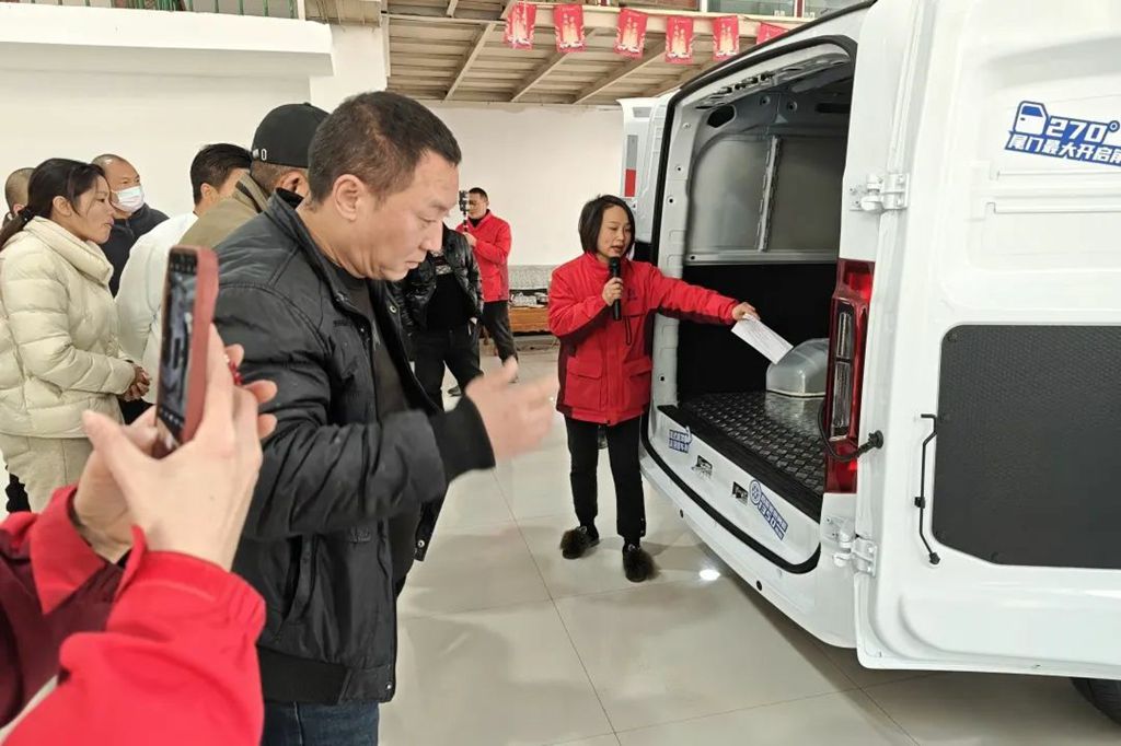 原来这是襄阳荣运达开展的客户品鉴活动。在现场,客户们对展厅内的睿立达车型十分感兴趣,不断地向销售人员提出各种问题。针对大家关心的电池续航、装载空间、驾驶室细节等问题,襄阳荣运达销售人员对睿立达产品进行了全方位系统的车型讲解和优势介绍,客户们兴趣盎然,听得仔细认真,慢慢对睿立达系列产品有了初步的了解和认可。