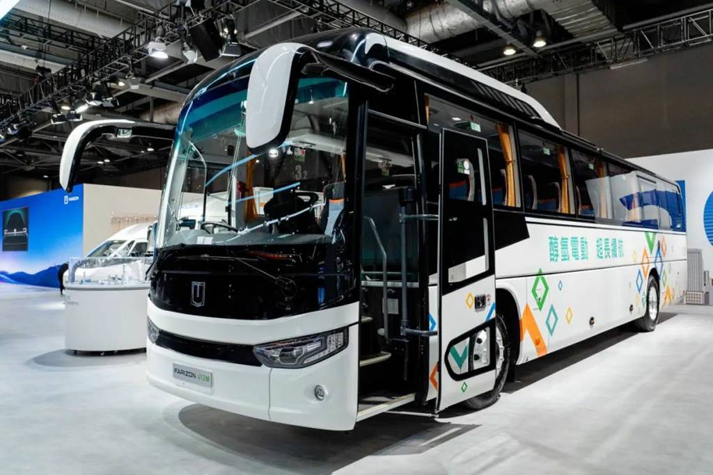 本次车展上另一看点便是远程星际醇氢电动城间客车U12M以及吉利甲醇循环经济沙盘,充分展示了“醇-运-站-车-捕”的循环生态。远程星际U12M是满足香港市场需求而研发的12米城间客车,严格符合香港法规要求,搭载的全球首创醇氢电动技术可实现满醇满电下续航里程超700公里,精准满足香港城间交通线路的高频班次、高里程、复杂坡度路段等多样化运营需求的同时避免里程焦虑,在炎热高温的场景下不必担心空调耗能,为乘客提供舒适凉爽的乘车体验。