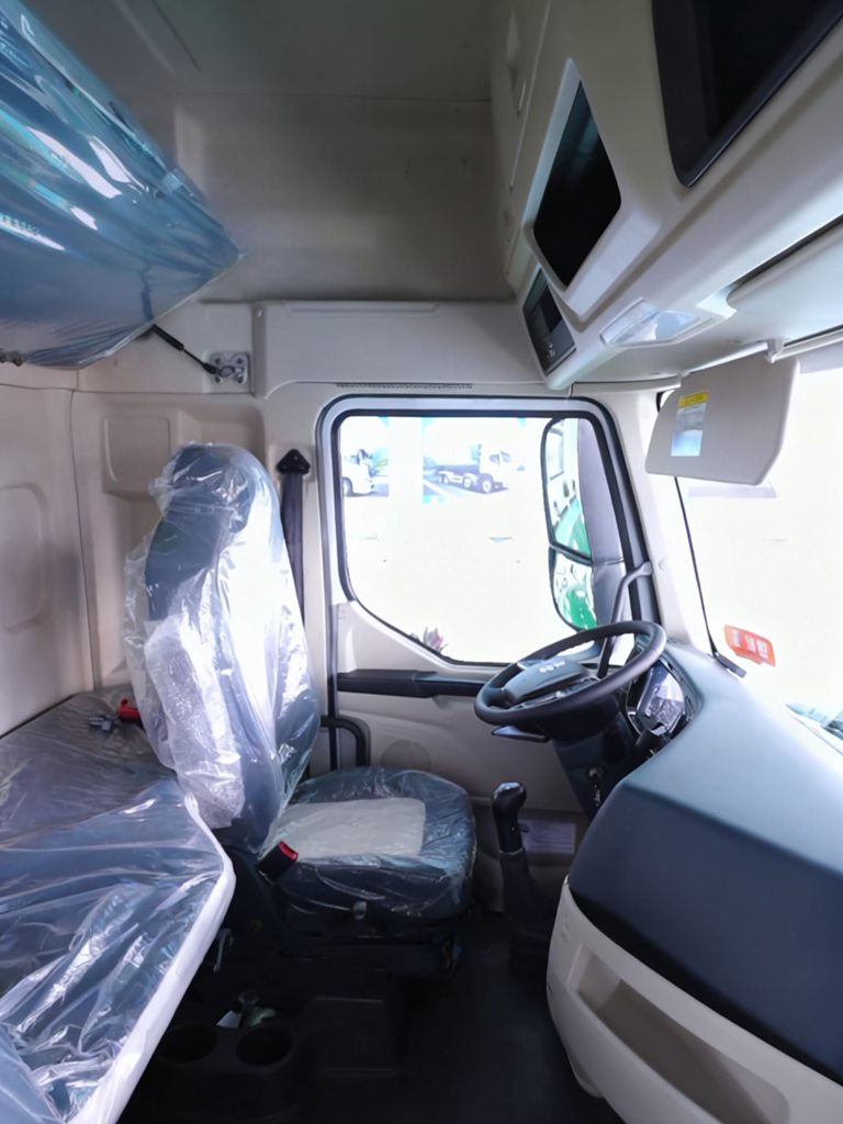 它配备平地板高顶双卧驾驶室,搭配气囊减震座椅,长时间驾驶也能保持舒适;