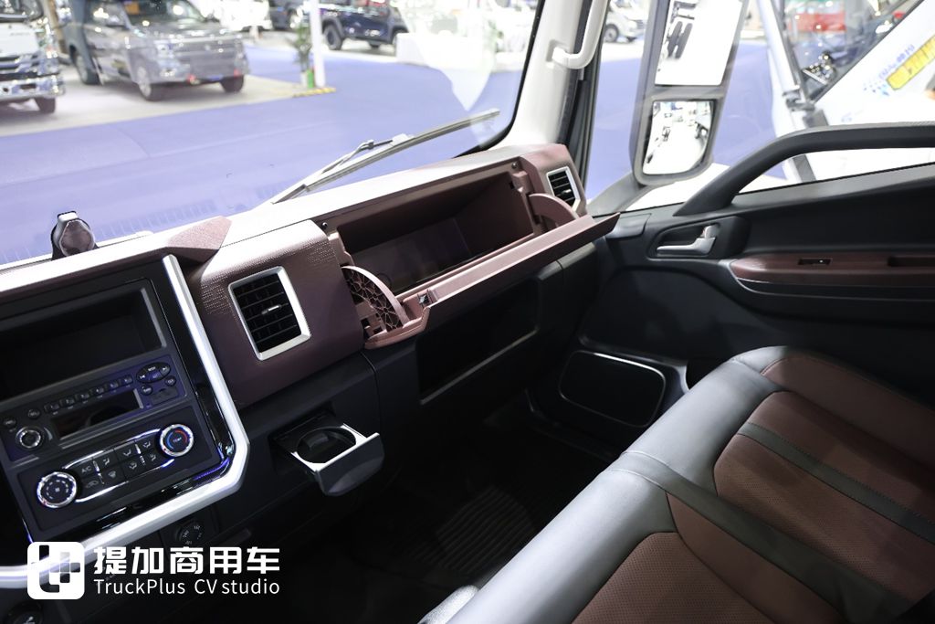 高端轻卡,气囊减震座椅自然是要配的,除此之外,座椅还带有腰部支撑的功能。像全新的帅铃ES9车内三个座椅中间是完全没有阻挡的设计了,1.9米贯通尺寸,驾驶员在休息时能直接躺在座椅上睡觉。如果还想增加休息时的舒适性,江淮还能提供1.86米折叠卧铺的选项。