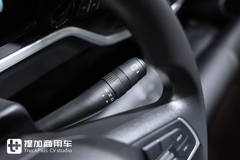 像这种宽体轻卡,应该是有绿牌和黄绿两种公告,一个驾驶门槛低,另一个承载吨位大。栏板、仓栅、厢式、冷藏、自卸全系可选,基本上涵盖了所有新能源轻卡的使用工况,还标配倒车雷达。