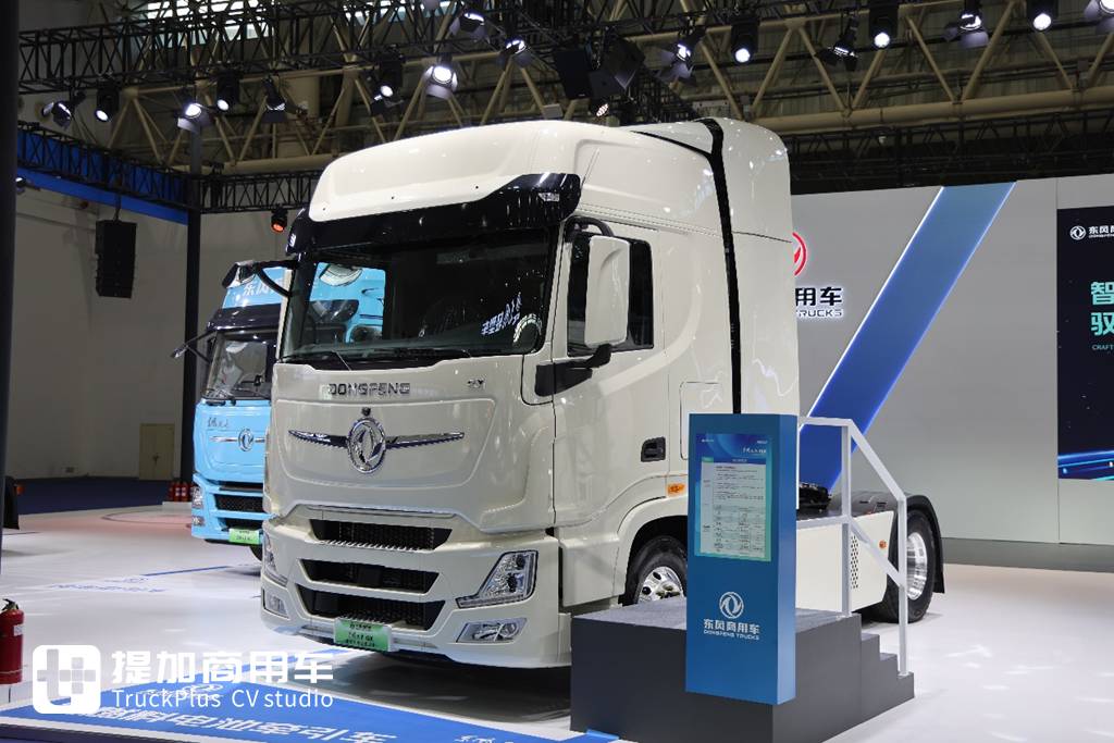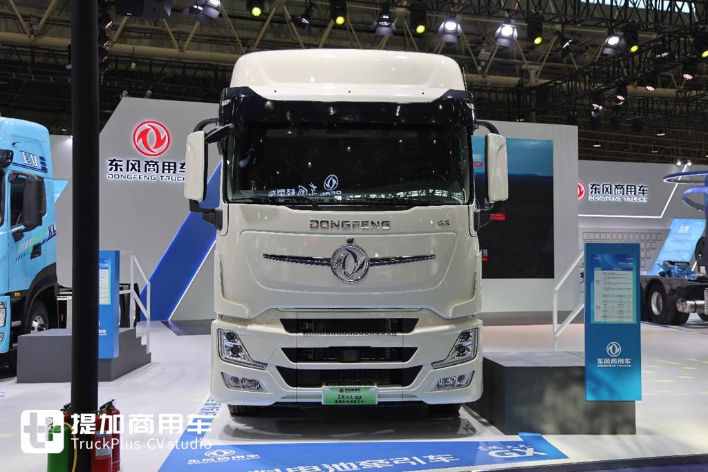 东风天龙GX氢燃料电池牵引车采用大功率高效燃料电池系统,功率190kw,逆反应转化效率>48%,可以理解为消耗同样的氢气这个系统的发电量会更大。续航方面,车辆标配4个353L的储氢瓶,搭配99度磷酸铁锂电池,实现加氢20分钟,续航超700km的表现,运营效率媲美柴油车。